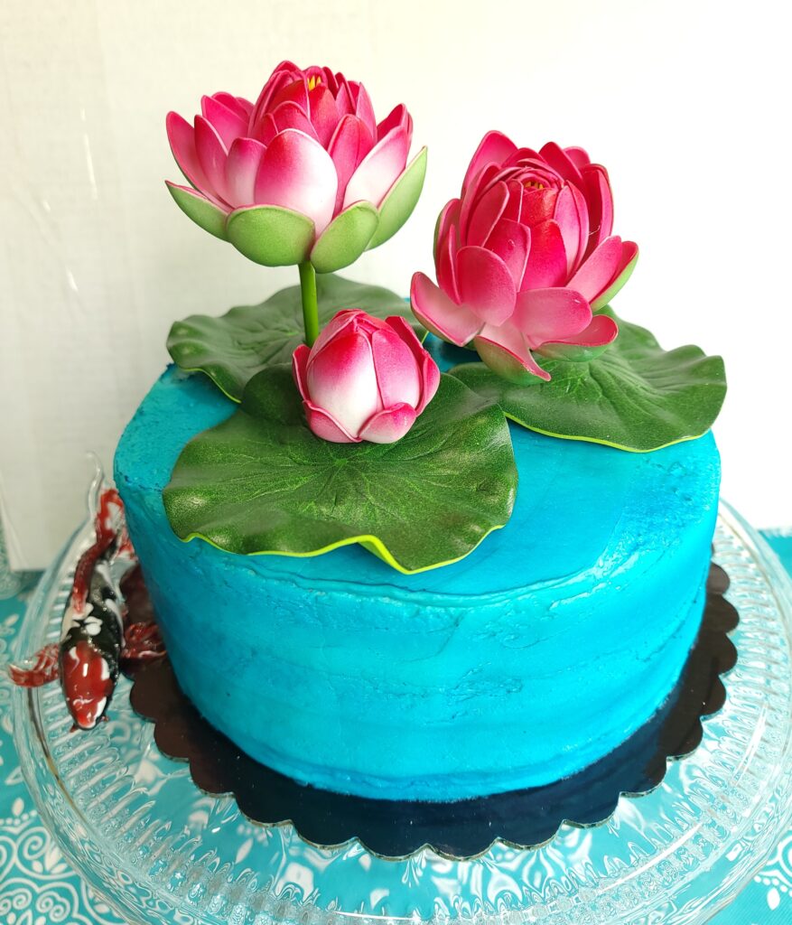 When you want a showstopping cake but don’t want the showstopping bill, hack it! This cake takes its inspiration from Monet’s Water Lilies with sleek koi swimming just below the surface for a fraction of the price it would run at a bakery.